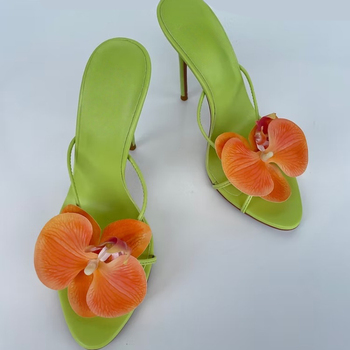 Abito da donna con fiore anteriore scarpe aperte scarpe con tacco alto pump sandali alla moda scivolano su muli da spiaggia estivi